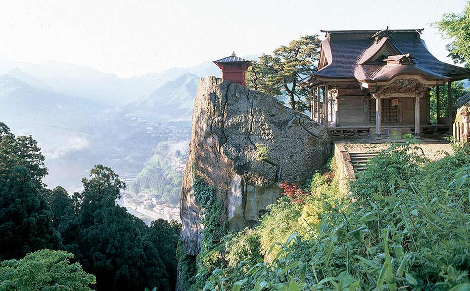 「山寺」は正式名称を「宝珠山立石寺(ほうじゅさん りっしゃくじ)」と言い、860年に創建された寺院です。山の麓には、国指定の重要文化財でもある本堂(根本中堂)があり、山門から続く1,015段の石段は、一段登るごとに煩悩が消えていくと言われる修行の道。山の上からの見渡す山里の風景はまさに絶景です。