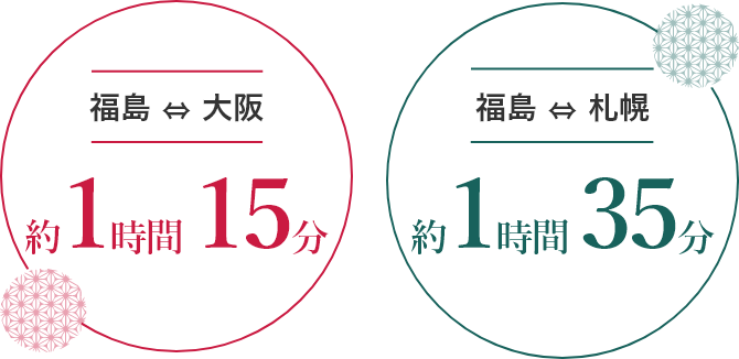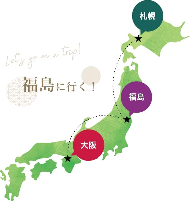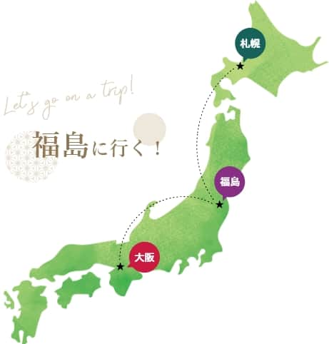 伊丹空港を経由すれば、九州・沖縄をはじめ、四国からも福島へふたっとびで訪れることができます。北海道内からも新千歳空港経由で便利に福島へ!