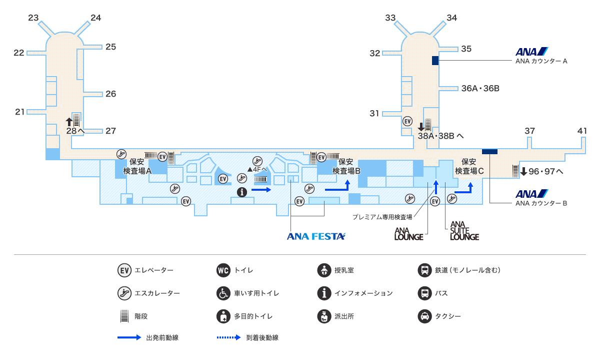 現在の待ち時間は、保安検査場の混雑状況からご確認ください。