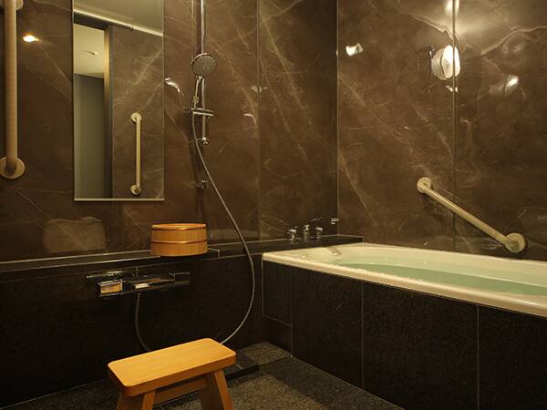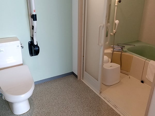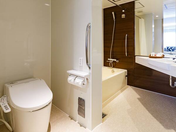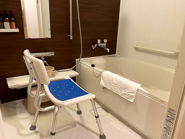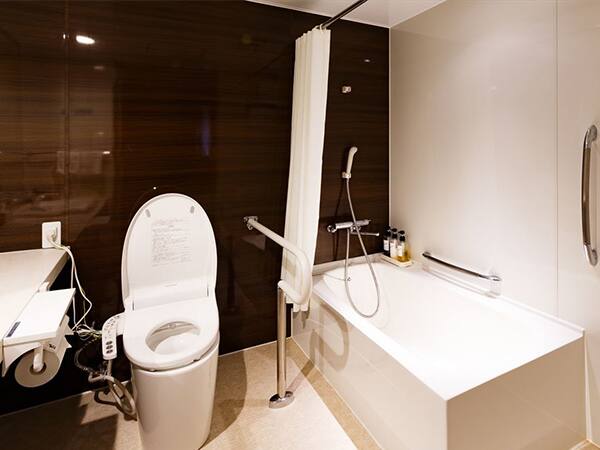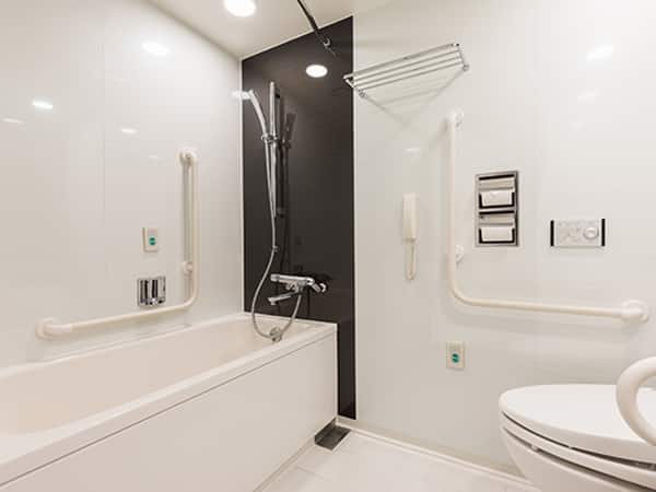 浴槽やトイレには手すりを設置し、ご高齢の方や車いすでのご利用にも配慮したバリアフリーのお部屋です。