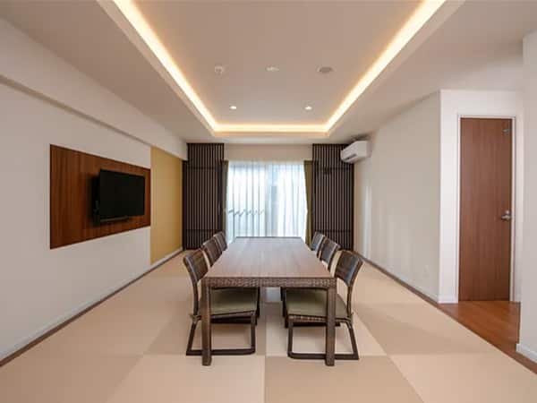 広い間口のバスルーム、バリアフリー対応のトイレなどご高齢の方や車いすのご利用にも配慮したお部屋です。畳のリビングで安全、快適にお過ごしください。