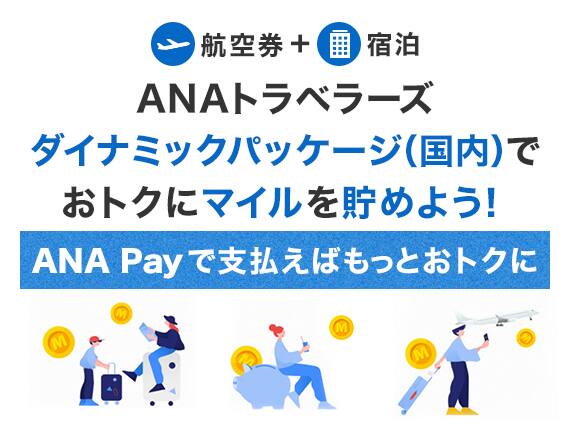 また、ANAトラベラーズ ダイナミックパッケージで「プラスマイル付きプラン」をお選びいただくと、さらにマイルが貯まります。(※プランごとに設定のマイル数が代表者に積算されます。)