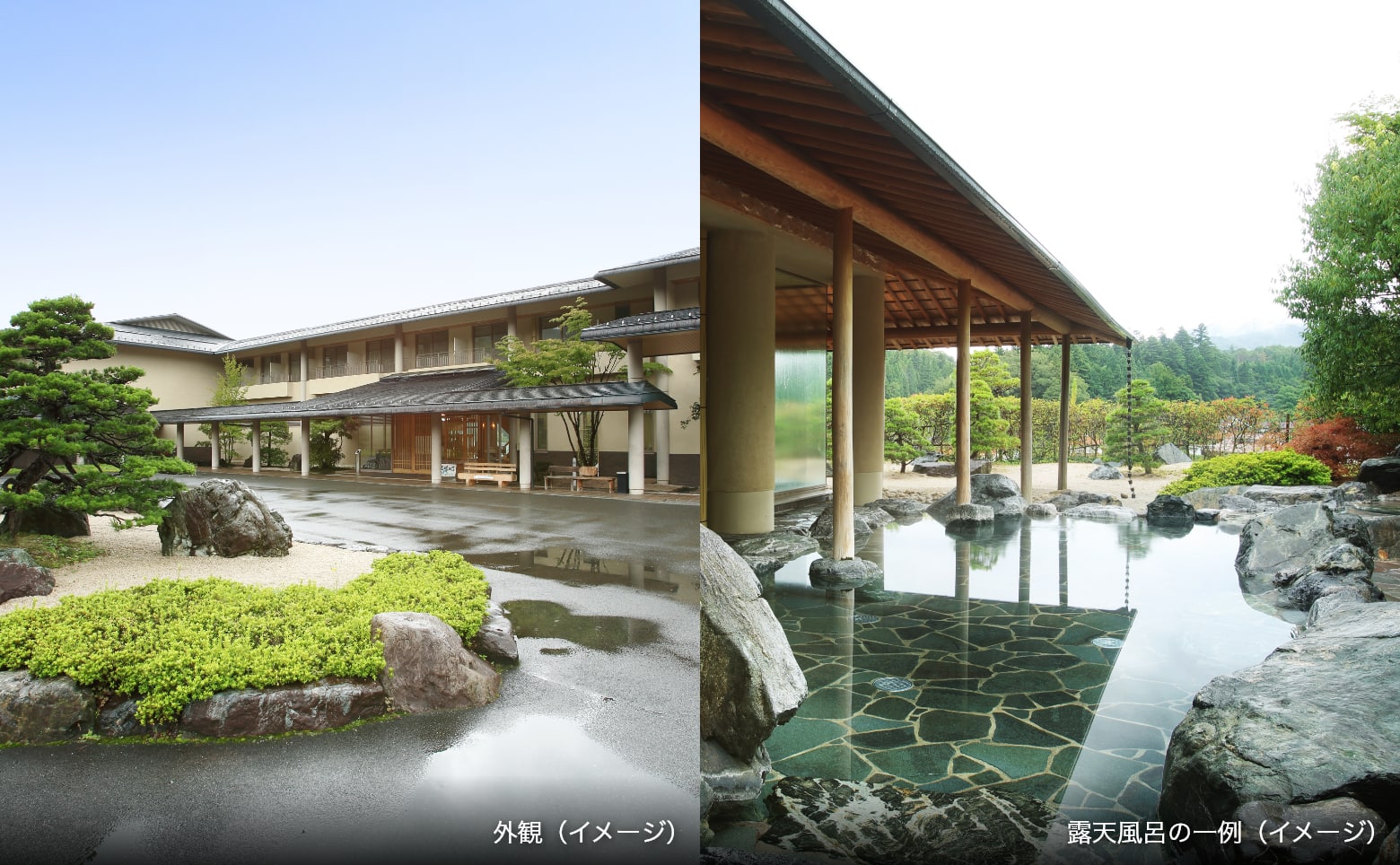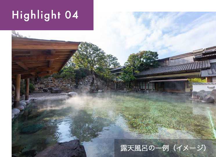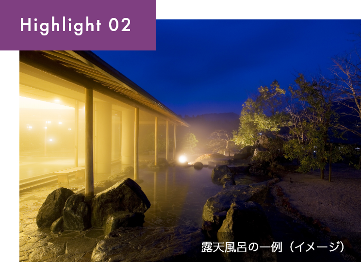 大露天風呂をはじめとする自慢の温泉はもちろん、約1万坪の回遊式庭園など心身ともにおくつろぎください。