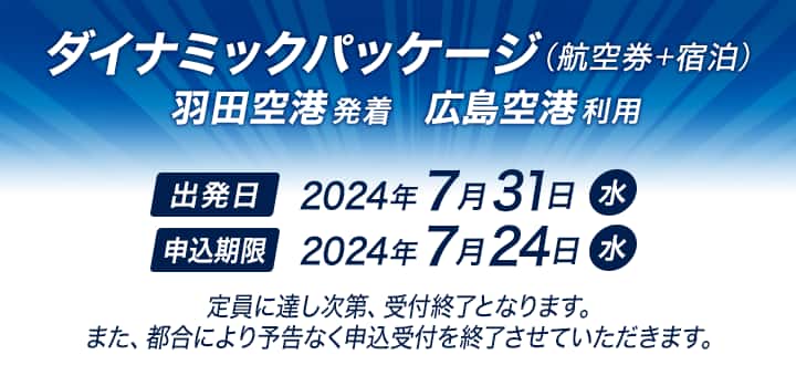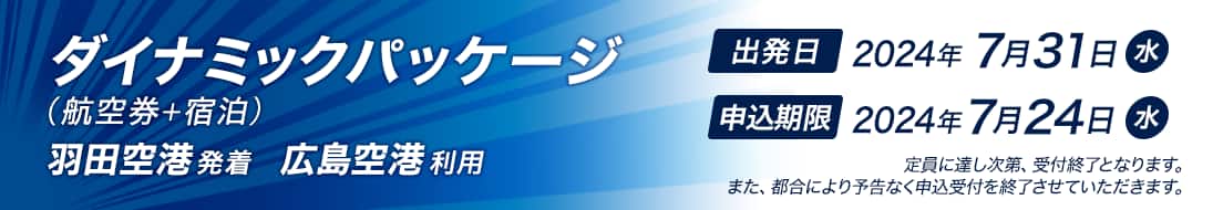 7月31日の往路航空便は、15時迄に到着する便をご予約ください。