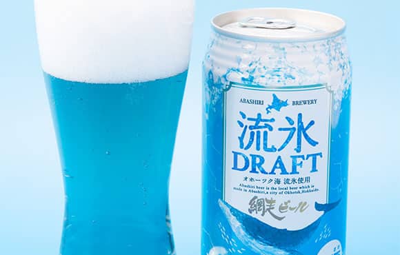 ビール麦の一大生産地である網走の地の利を活かしながら、オホーツク海の流氷を仕込水として使用し、天然色素クチナシによるオホーツク海をイメージした鮮やかなブルーが特徴的で、すっきりとした爽やかな飲み口の発泡酒。冬こそキンキンに冷えた「流氷ドラフト」を。