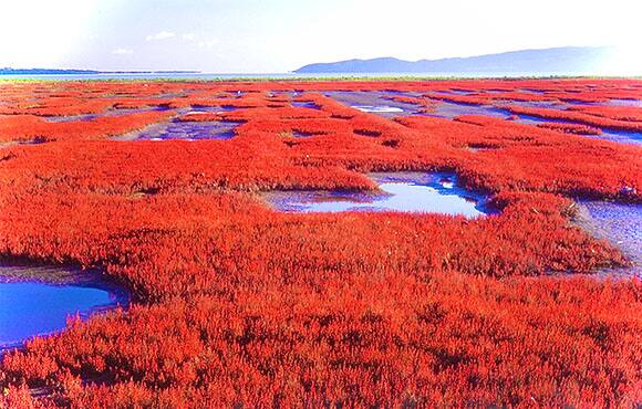 能取湖は、オホーツク海とつながる面積58万平方メートルの大きな海水湖。ホタテやホッキ、北海しまえびなど海の恵みの宝庫です。湖畔にはサンゴ草と呼ばれるアッケシソウの群落地があり、毎年9月になると紅葉したサンゴ草が湿地帯全体を真っ赤に染めて幻想的な風景に。木製の遊歩道が設置されているので、一面に広がる景色を間近にたのしむことができます。