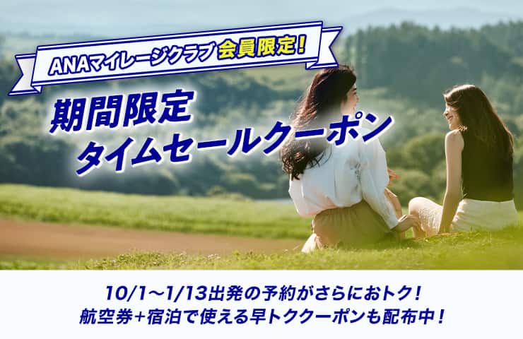 ご利用人数に関わらず、ANAマイレージクラブ会員の代表者のみにお使いいただけるクーポンとなります。代表者以外の方にはお使いいただけません。