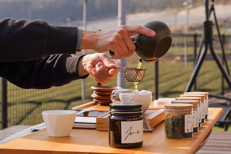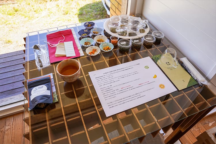 南九州市産の煎茶をベースに、様々なハーブやフルーツを組み合わせ、自分だけのブレンドティーを作る体験です。茶畑を楽しみながら、ゆっくりお茶も飲めます。