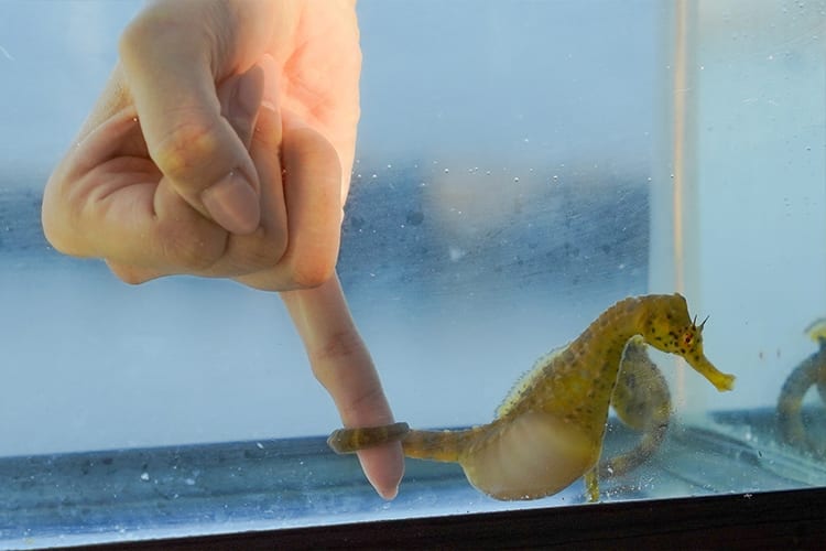 開聞岳を望む公園内を散策したあと、幸運のシンボルとされる「タツノオトシゴ」について、店主が解説します。館内では、本物のタツノオトシゴを使ったアクセサリーつくり体験や水槽のタツノオトシゴと触れ合う体験もできます。
