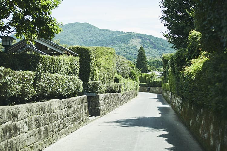 薩摩の小京都「知覧」を代表する美しい町並みが続く麓地区。母ヶ岳を借景にした箱庭のような通りから門をくぐり抜け庭園に足を踏み入れると、時代を遡りタイムスリップしたかのような歴史と伝統が共存する風情ある景色が広がります。