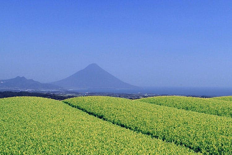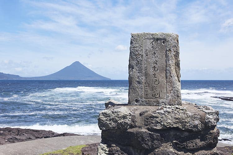 東シナ海に浮かぶ日本百名山「薩摩富士」と称される開聞岳と、数十万年前の火山活動とその後の浸食で形成された天然の岩礁地帯の曲線美が映える景勝地です。日本地図作成で知られる伊能忠敬が「天下の絶景」と絶賛した、とも言われています。