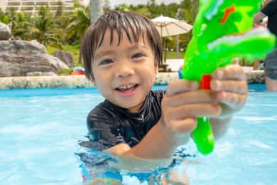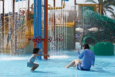 • ウォータースライダーやキッズの好奇心をくすぐる仕掛け満載の水遊びエリア