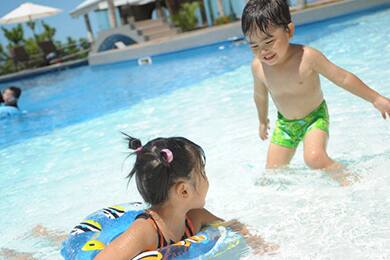 • ガーデンプールは最深約1m。傾斜のついているプールですので、お子様でもご利用可能。