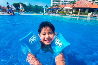 約1kmにおよぶ天然ビーチに面した広大な敷地に建つリゾートホテル。キッズプールやスプラッシュパークで子供も大満足。ベビー&キッズルームや豊富なアメニティで家族旅行も安心。美しい自然と充実の施設で、家族みんなが笑顔になれる楽園リゾート!