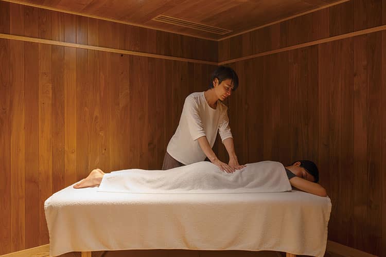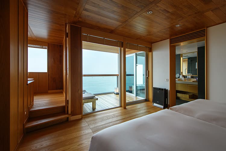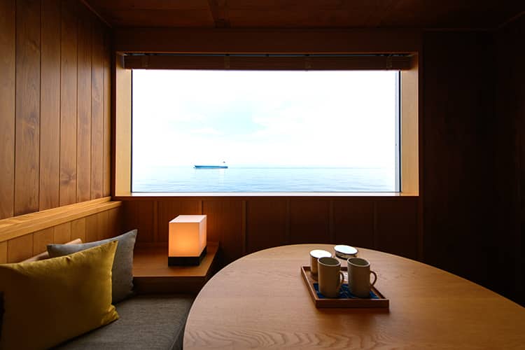 「お好きなものを、お好きなだけ」をコンセプトとするダイニング、海の見える鮨カウンター、目の前で和菓子をおつくりするラウンジ、檜の浴槽とサウナのある浴場など、思いのままにお過ごしいただける空間が広がっています。