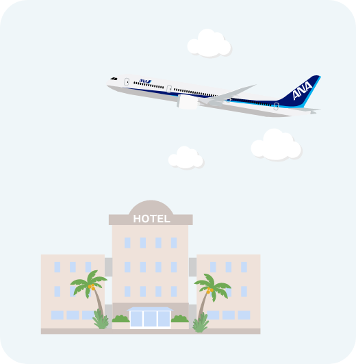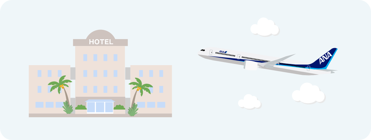 羽田⇔那覇間(区間基本マイレージ:片道984マイル)の往復の場合の例となります。空席・空室状況により、旅行代金はリアルタイムで変動します。