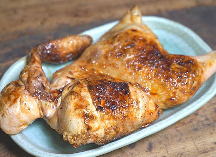 旭川のソウルフード「新子焼き」の由来。魚のコハダは出世魚で、成長に合わせて名前を変えます。そのいちばん小さい時期を新子ということから、若鶏を新子と呼んだと言われています。モモにムネ、手羽先にささみ、ぽんぽちなど様々な部位を味わえるのも特徴。お店に代々伝わる秘伝のタレや塩で豪快に焼き上げます。