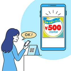 お会計時に二次元バーコードを読み取ってクーポンサイトへアクセス!