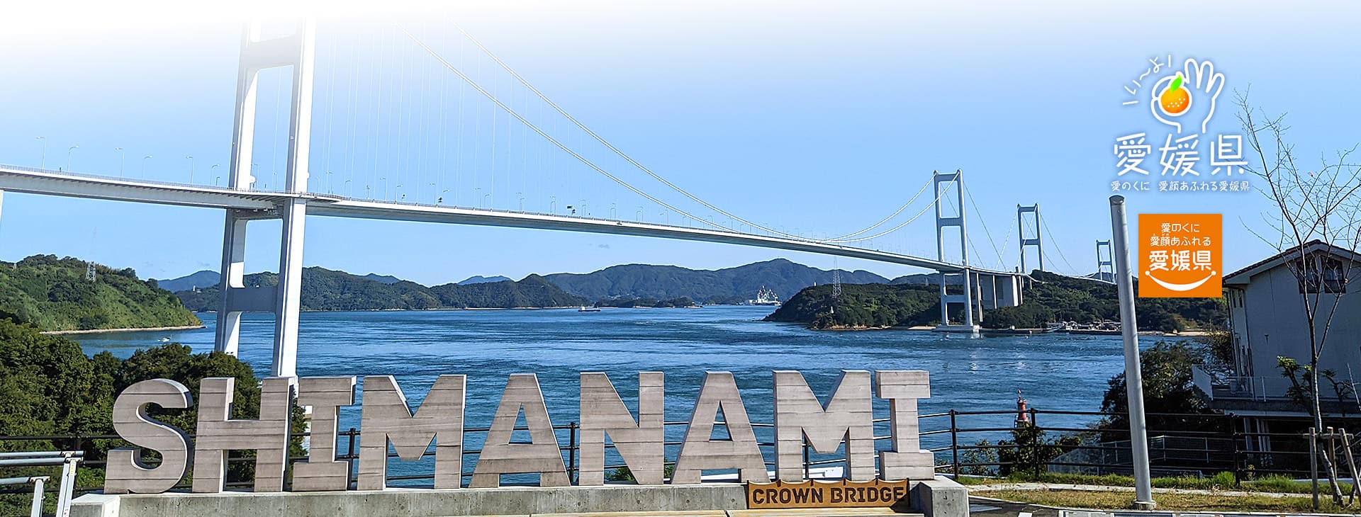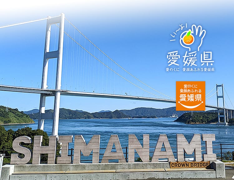 愛媛県の東部に位置する東予エリアには、代表的な名所のひとつ「しまなみ海道)があります。愛媛県と広島県の間にある6つの島を繋ぐ9つの橋で、全長は約60キロメートル。徒歩や自転車でもわたることができるので、絶景をたのしみながらサイクリングで島めぐりをするのもおススメです。