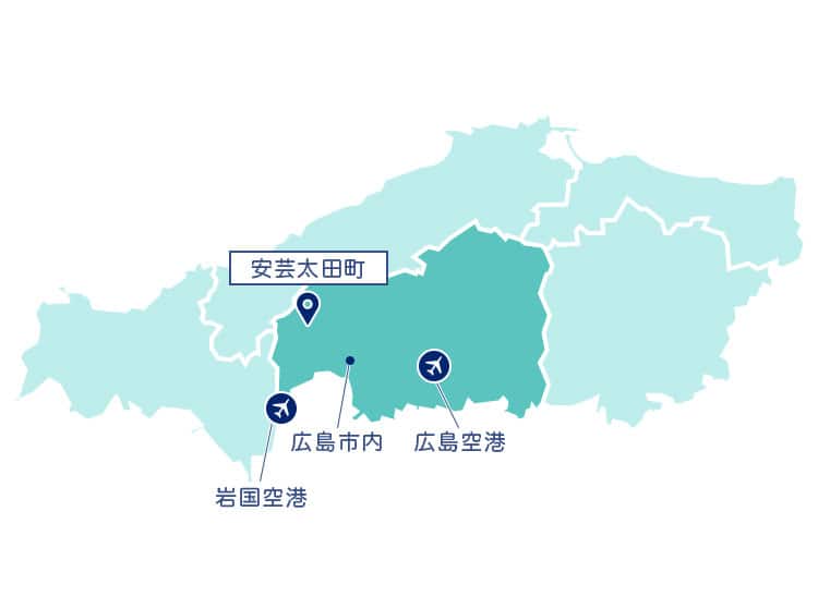 広島空港、岩国錦帯橋空港から車で約1時間30分
