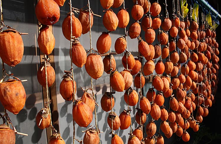 皇居にも植えられ、あの夏目漱石も秋の味覚として楽しみにしていたといわれる祇園坊柿は、実が非常に大きく緻密でメロンにも勝るも劣らないさっぱりとした上品な甘さと香りが特徴で「柿の王様」ともいわれるあきおおたの特産品です。1本ずつおばあちゃん達の手によって作られる干し柿スイーツ「チョコちゃん」も大人気