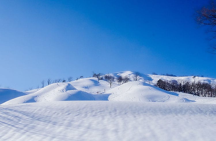 草原の上に降り積もる良質な積雪は、見事な景観をつくりだす。