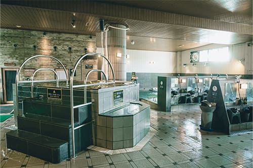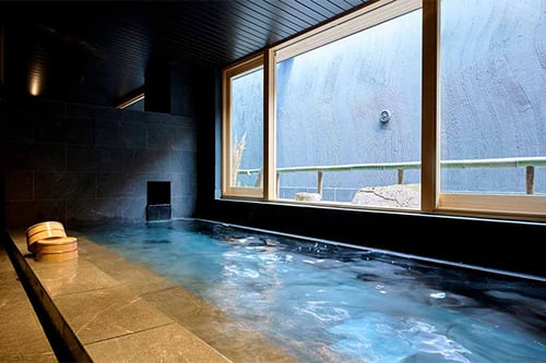 熊本市電「辛島町駅」から徒歩1分。日本庭園を眺める露天風呂付き大浴場は壺湯や木製風呂など多彩なお風呂をご用意しております。
