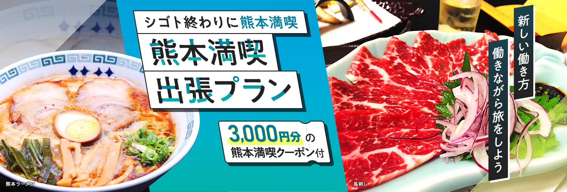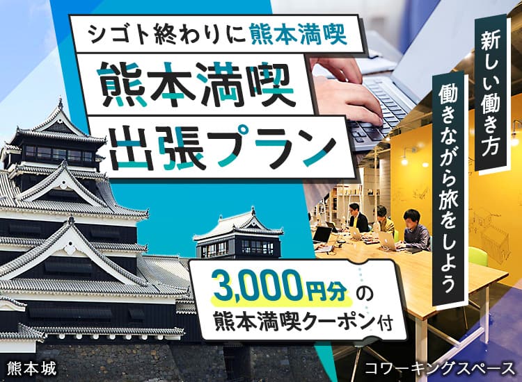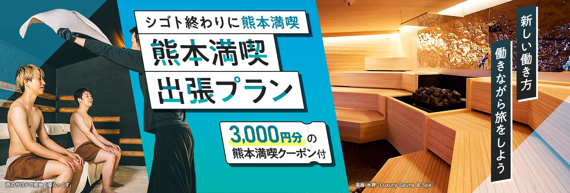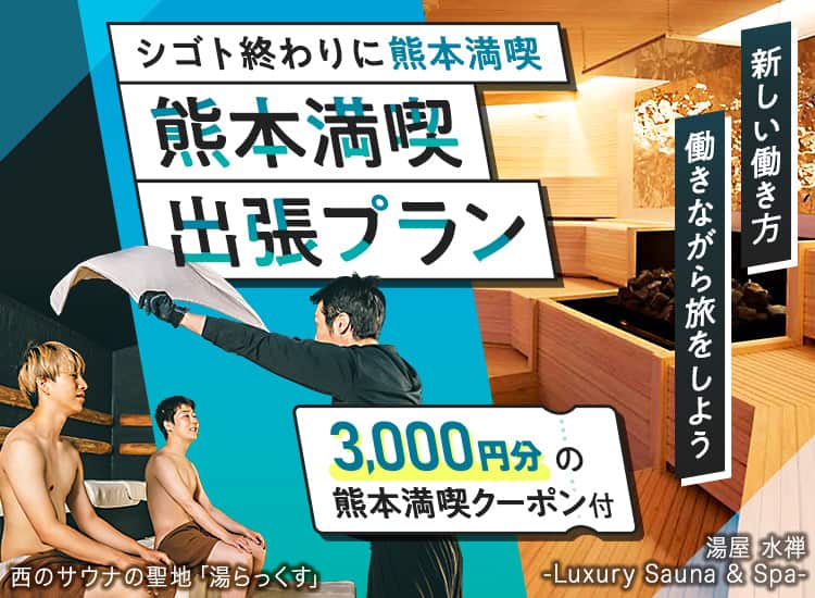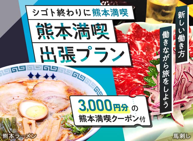 出張・シゴト終わりに自分へのご褒美。熊本を満喫できる「熊本満喫クーポン」で熊本を満喫しよう。