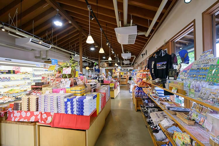 道の駅やす内にある、直営土産物店。こじんまりした店内には高知の銘菓や人気の塩けんぴ、ゆずや鰹の加工品、地酒など品揃えが豊富。高知県の東部から西部までの土産物を幅広く取り扱っています。龍馬グッズやオリジナルストラップなどの雑貨ももりだくさんです。
