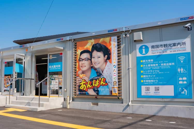 2026年2月8日までの期間限定で、南国市の特産品販売やレンタサイクル貸出、観光定時ガイドの受付、手荷物預かり、おへんろ衣装レンタルを行っています。やなせさんや南国市、高知県に関する各種観光パンフレットも揃えているので、ごめん町での散策時は情報収集に便利です。