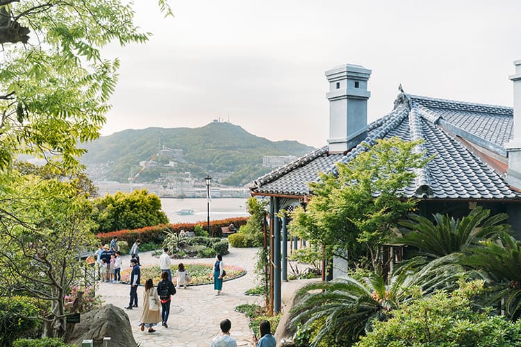 長崎港の大パノラマを見下ろす南山手の丘に位置し、今もなお歴史を刻み続ける「グラバー園」。3棟の国指定重要文化財と、長崎市内に点在していた貴重な伝統的建造物が移築復元されており、幕末から明治の長崎の歴史を感じることができます。また、長崎市のランドマークである稲佐山を背景に長崎港を一望できる絶好のロケーションもおすすめです。