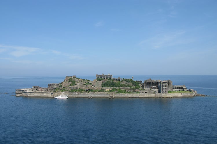 長崎港から船で約40分の所に位置する「端島(はしま)」。岩礁の周りを埋め立てて造られた人工の島で、外観が軍艦「土佐」に似ていることから「軍艦島」と呼ばれるようになりました。最盛期の1960年には約5300人が住み、当時、日本一の人口密度を誇っていました。2015年7月に世界文化遺産「明治日本の産業革命遺産 」として正式に登録されました。