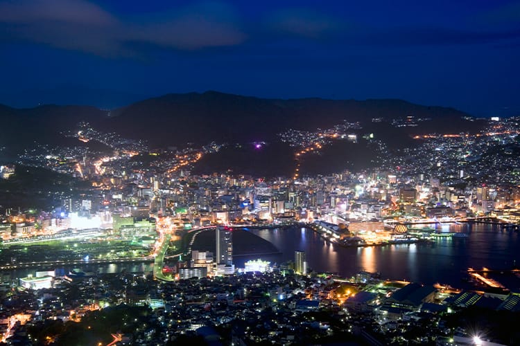 世界新三大夜景に認定されている、長崎市の夜景。周囲を山に囲まれているため、いろんな場所から眺められます。