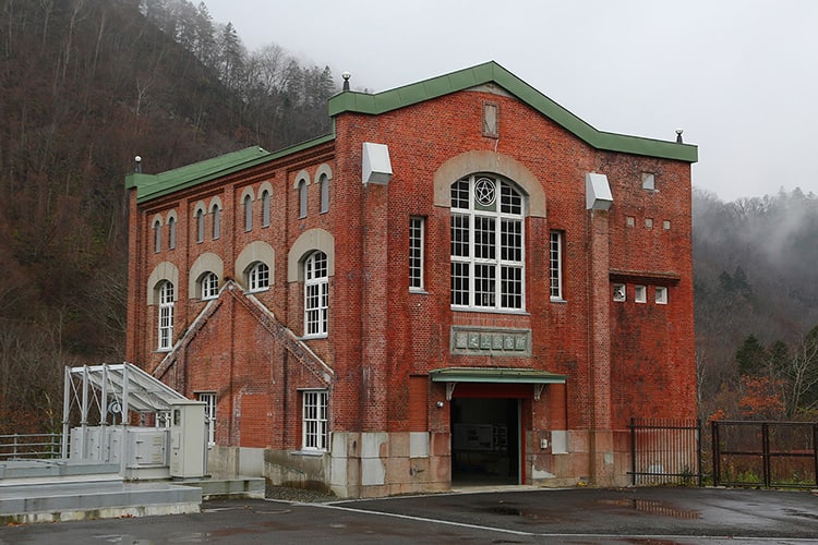 北炭により建設された自流ダム水路式の水力発電所で、1924年(大正13年)に竣工し、翌年から稼働を開始しました。赤いレンガ造りの旧発電所建屋は当時の代表的な洋風建築物で、現在は春の桜、秋の紅葉との見事な調和を楽しむことができます。