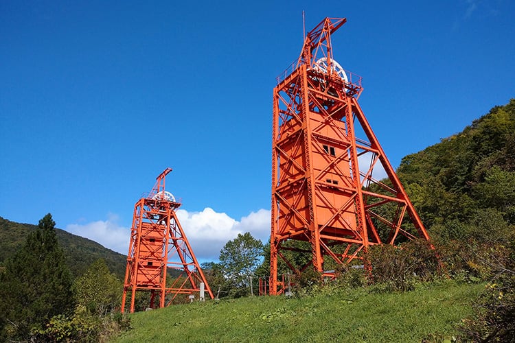 1923 年(大正12年)に建設された、道内で2番目に古い竪坑櫓で一対は日本唯一。排気・入気用の2本の竪坑が並び、現在は炭鉱メモリアル森林公園として公開されています。