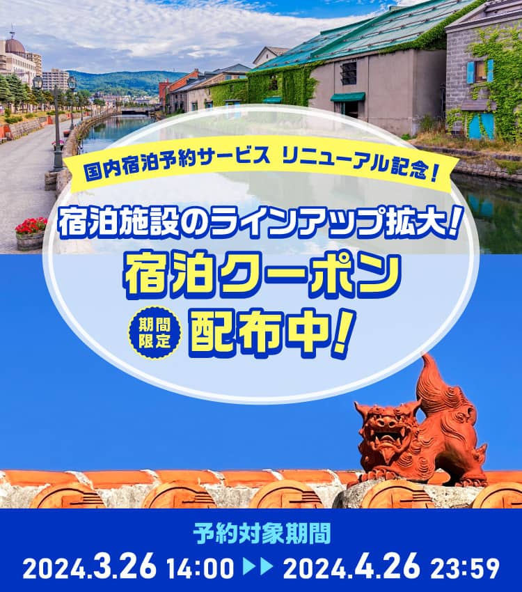 | 宿泊対象期間 | 2024/3/26~8/31(9/1チェックアウト分まで) |