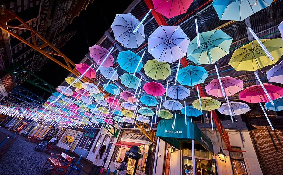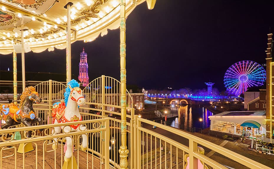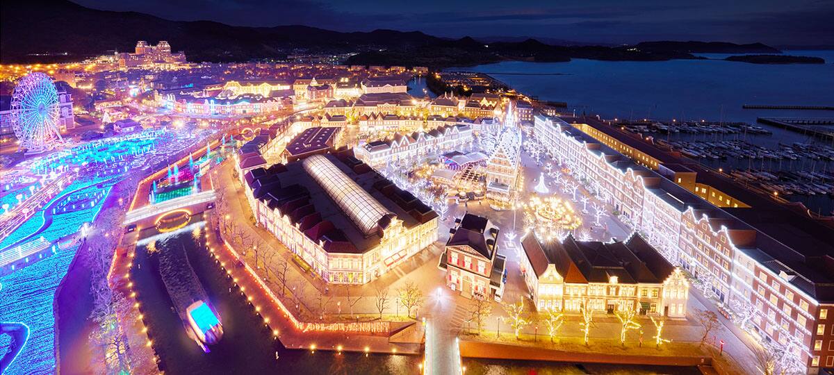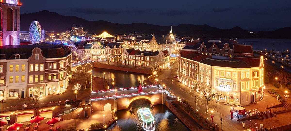 ヨーロッパのような街並みに四季折々の花が咲き誇り、一年を通してイルミネーションが華やかなこの街では、存分に遊ぶことも、ゆっくりと宿泊することもできます。
