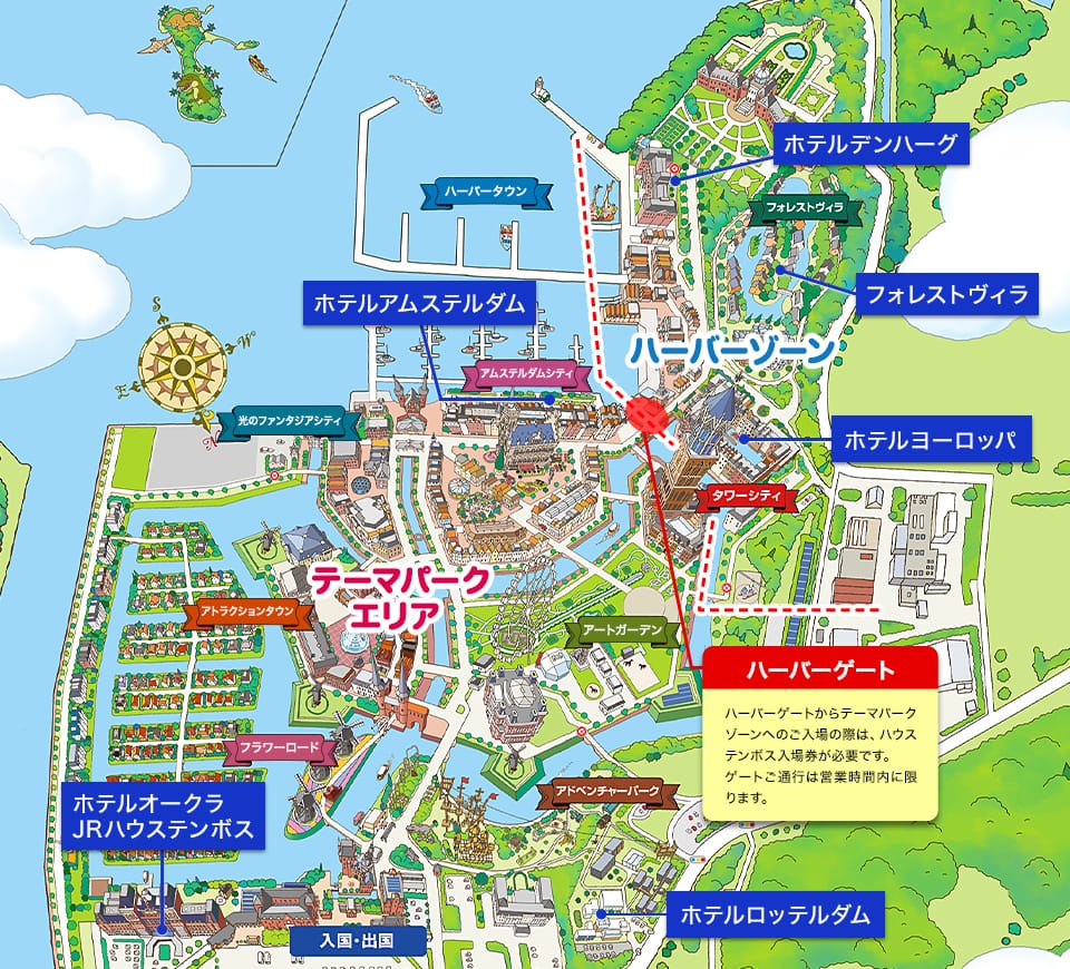 • ハウステンボステーマパークゾーンへご入場の場合は、1日ごとに入場パスポートが必要となります。