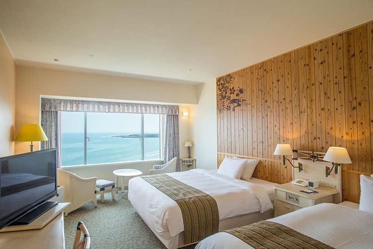 窓辺には眩しいオーシャンビュー、海と空とのグラデーションに映える白いフォルム、南国ブルーを独り占めしたリゾートです。