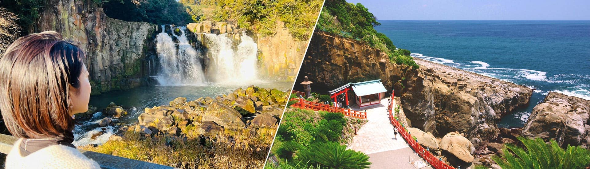 左側写真:関之尾滝 (Photo by KI・MOZO)
