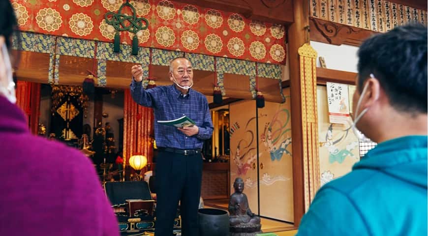 創立880年という由緒ある真言宗寺院「神宮寺」住職の中川宣昭さんは沼島の語り部。この地で伝承される国生み神話の解説から沼島の地理・歴史まで幅広いお話を聞くことができました。