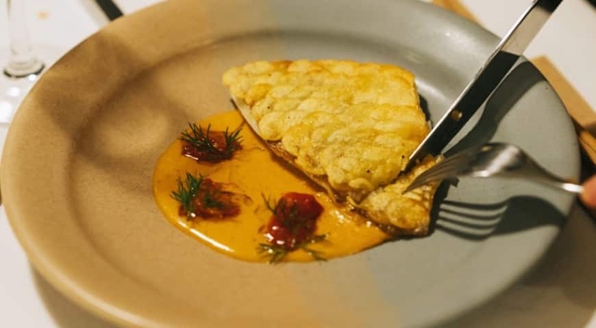 学生のお子様に人気だったのが新鮮な校庭トマトをソースに使った「鯛のうろこ焼き NADAのトマトのクリームソース」。香ばしく焼かれた鯛ととても合います。淡路島の大らかな自然が育む素材と料理を堪能しました。