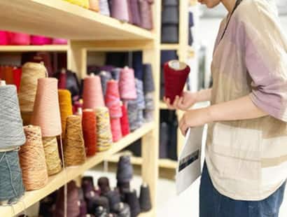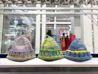 織物の産地で編み物!手のひらサイズのかわいいニット帽を創ります。目の前で動く編み機に、一人ひとりが選び組み合わせた糸をセットして編んでいきます。自分だけのこだわりの詰まったものづくりをお愉しみください。