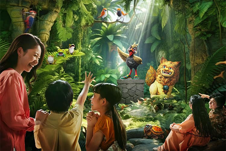 そこはやんばるの森のなか。ちょっぴりせっかちな『ジャン』とおっとりしたシーサーの『シシ』、ほかにも個性の豊かな仲間たちが歓迎してくれる。行ったことのない森の外に興味がいっぱいのジャンに、外の世界のことをたくさん教えてあげて!森のことは、ジャンがとにかく話したがってるから、どんどん質問してみよう!一緒にしゃべって盛り上がったら、キミももう森の仲間になっているよ。