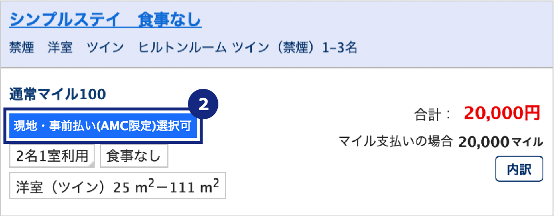 ホテルマイル決済に関する利用規約はこちらをご覧ください。