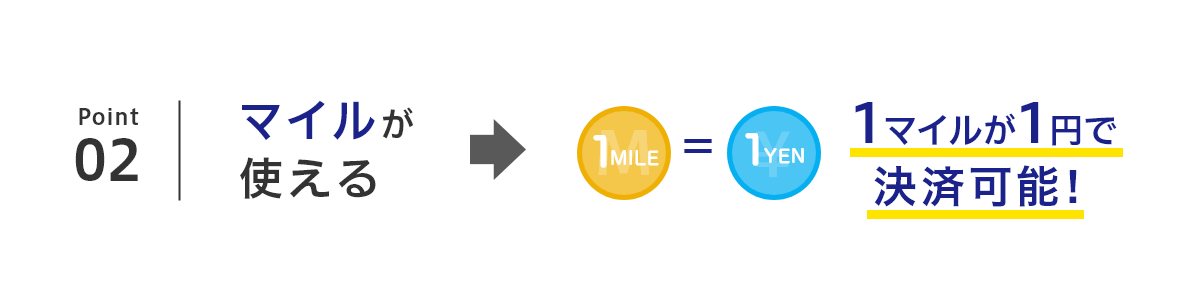 事前決済時にマイルとクレジットカードの併用が可能!1マイル=1円でお支払いいただけます。マイルが足りなくても、クレジットカードとあわせてのお支払いが可能です。