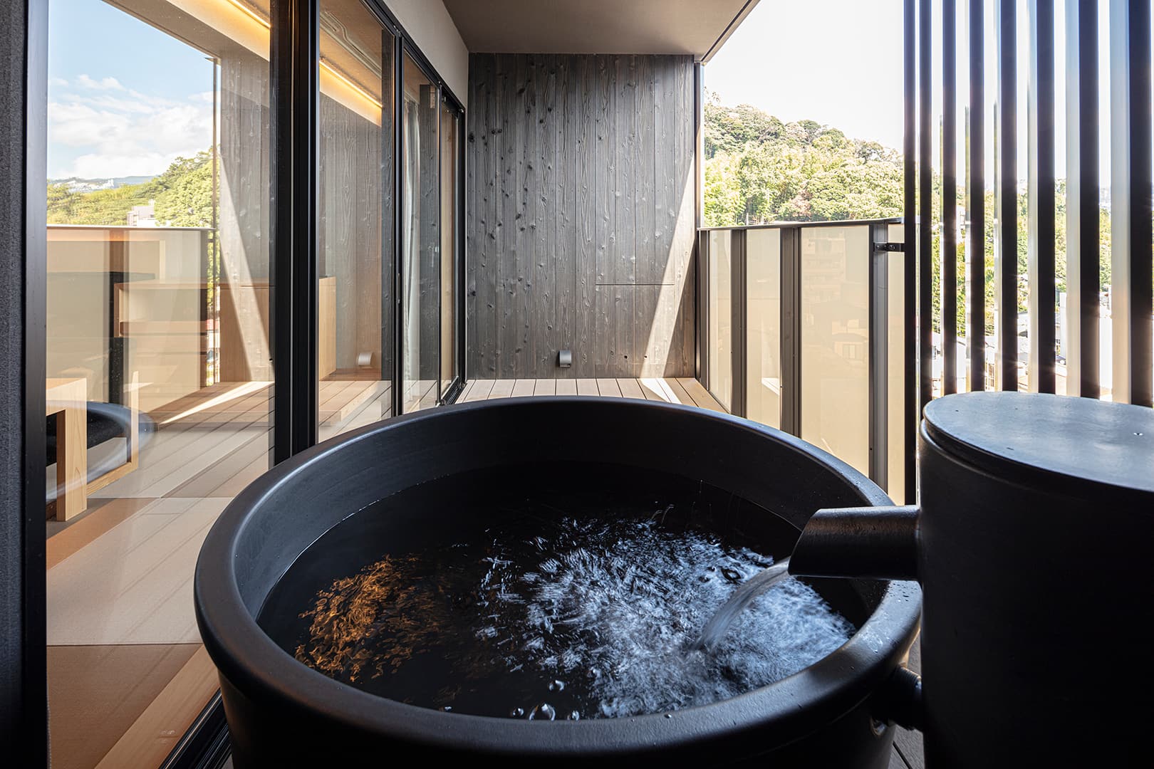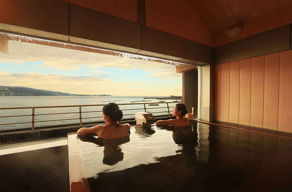 相模湾、熱海の街並みを見下ろす絶景と掛け流し温泉に身を委ねる悠久の時。