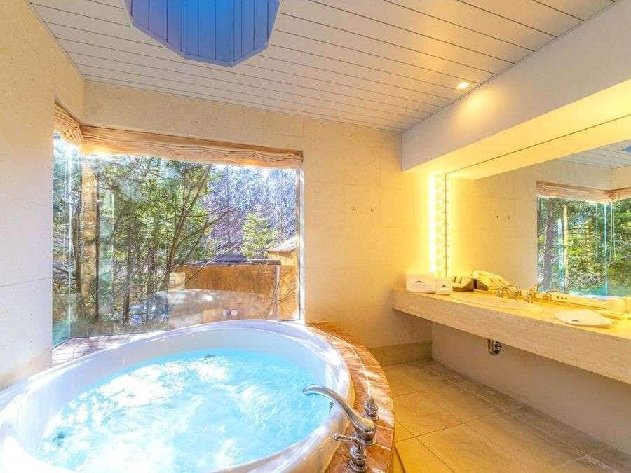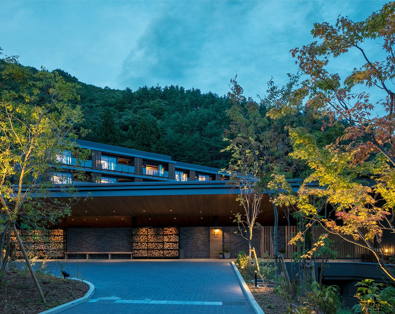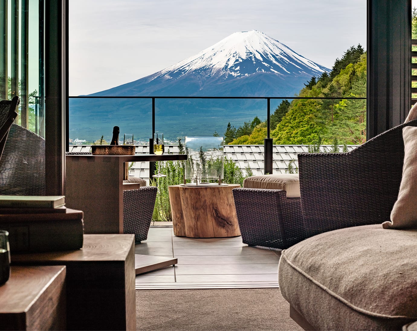 2018年10月、河口湖を見下ろす高台にグランドオープン。河口湖の雄大な自然を抜けて見えてくる森のリゾートホテルです。客室全32室は自家源泉の露天風呂付き客室で、お部屋からは雄大な富士山が望めます。森の薫りに包まれたプライベート空間で贅沢な時間をお過ごしください。