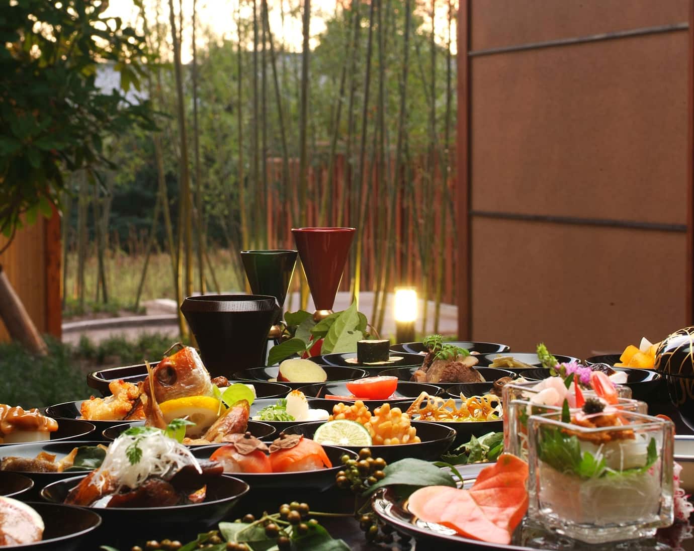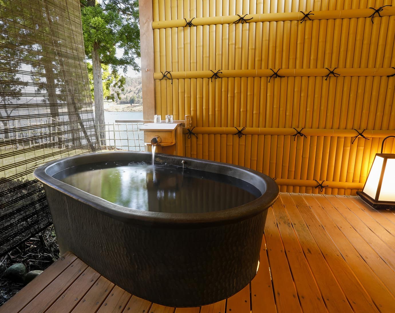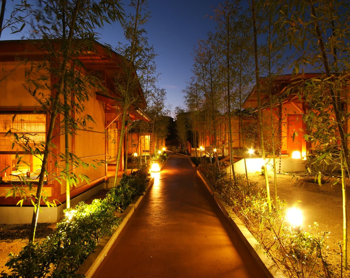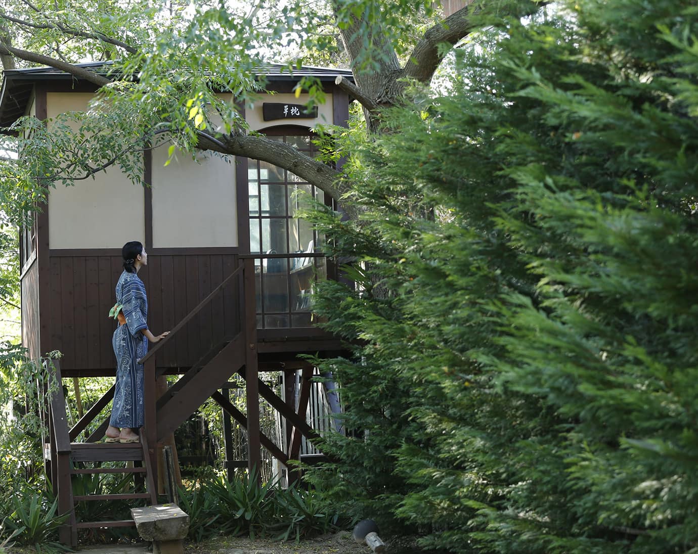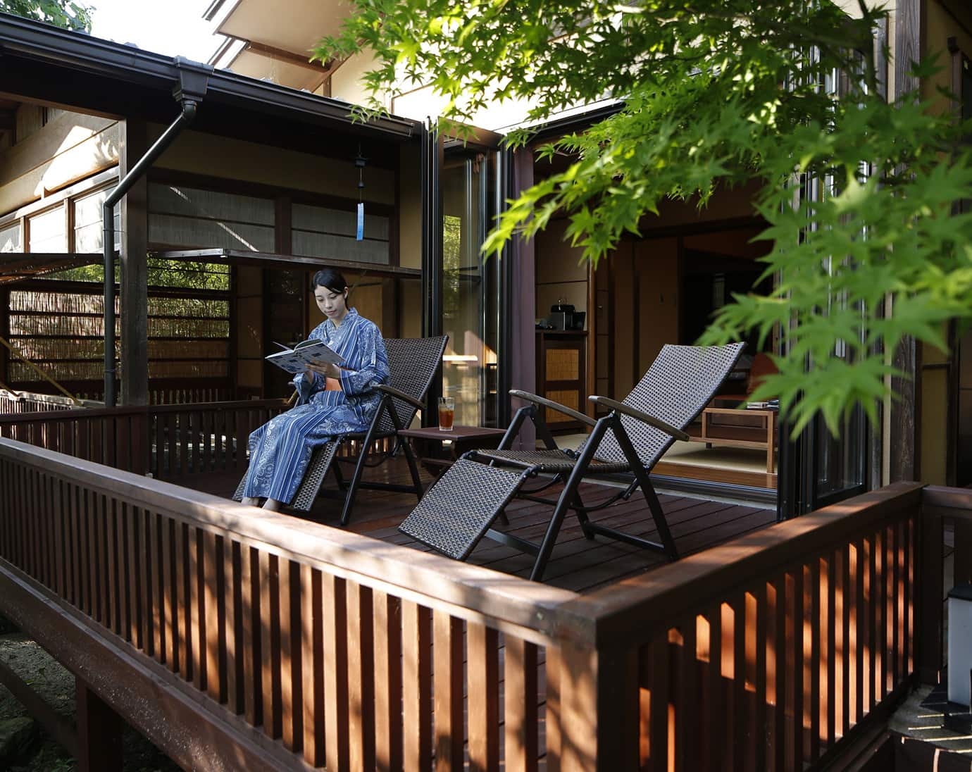 竹林とビオトープの川が流れる小さな別世界に、客室はわずか6棟。美人湯をたたえる露天風呂とデッキテラスを備えた完全独立型、大人のはなれが点在します。なかでも当庵のシンボル「瑞雨-ずいう-」は、築150余年の古民家を移築した歴史ある庵。タイムスリップしたかの雰囲気に包まれる特別な空間です。お食事は、丹後の海の幸、山の幸を個室食事処「天津水」にてご用意します。