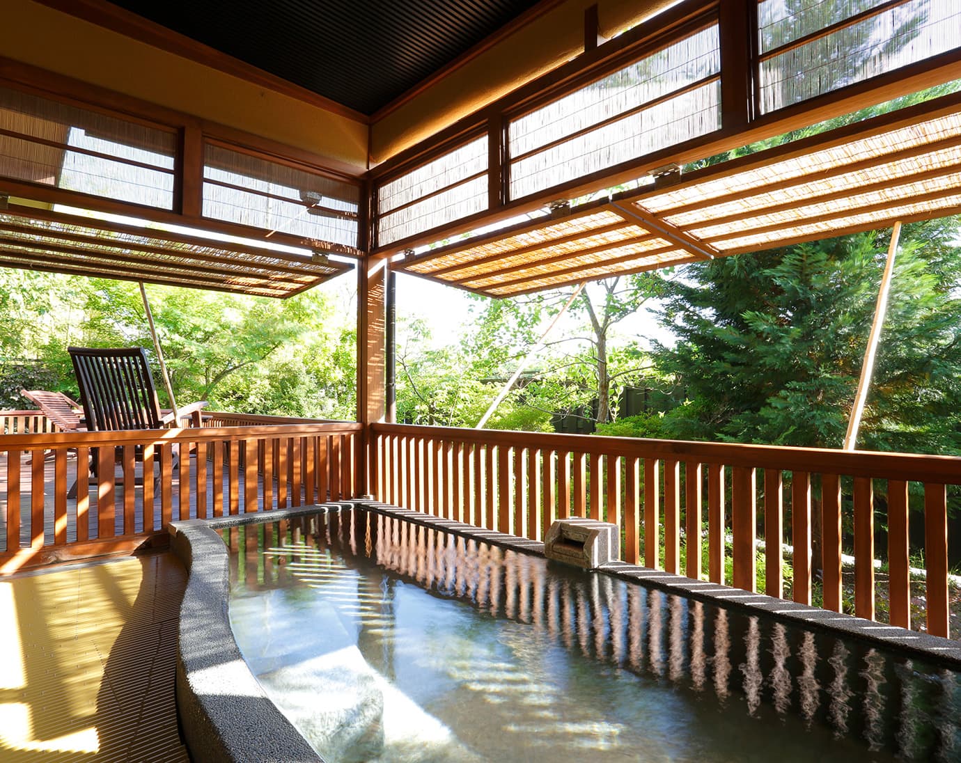 旅館・ホテルでは露天風呂と美味しい食事で日々の喧騒を忘れゆっくりと流れる時間をお過ごしいただけます。